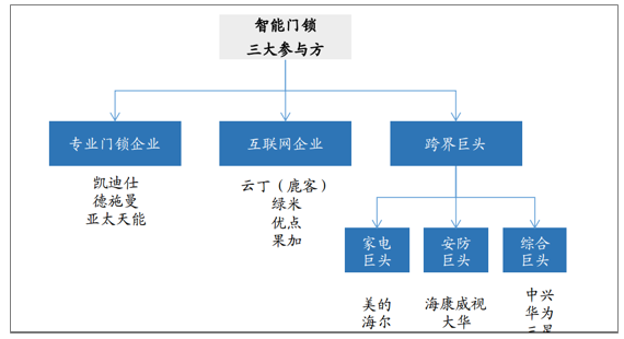 諸多市場參與者進(jìn)入智能門鎖市場中。主要可分為六大類,其中:
